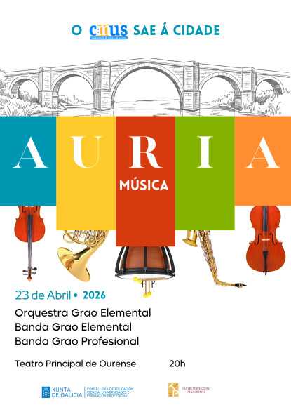 E para case rematar esta semana tan musical, a orquestra e a banda de Grao Elemental máis a banda de Grao Profesional nos esperan no Teatro Principal de Ourense (preguntade en conserxería se queda algunha entrada xa que o espazo é reducido).
